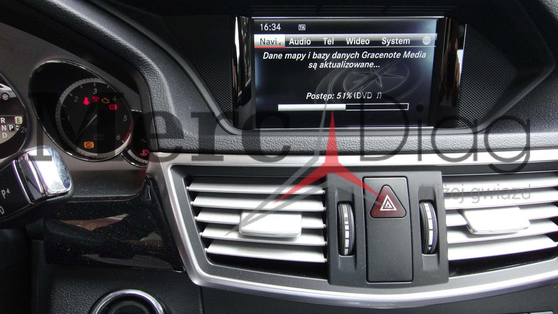 E350 CDI ’11 – W212 tzw. mały lifting – kolorowy licznik i „żółty” Comand – przeróbka na wersję „srebrną”, polskie menu całego systemu – Comand + licznik. Najnowsza mapa Europy, montaż i kodowanie przednich reflektorów „poliftowych”, wymiana i kodowanie pompy ESP etc.