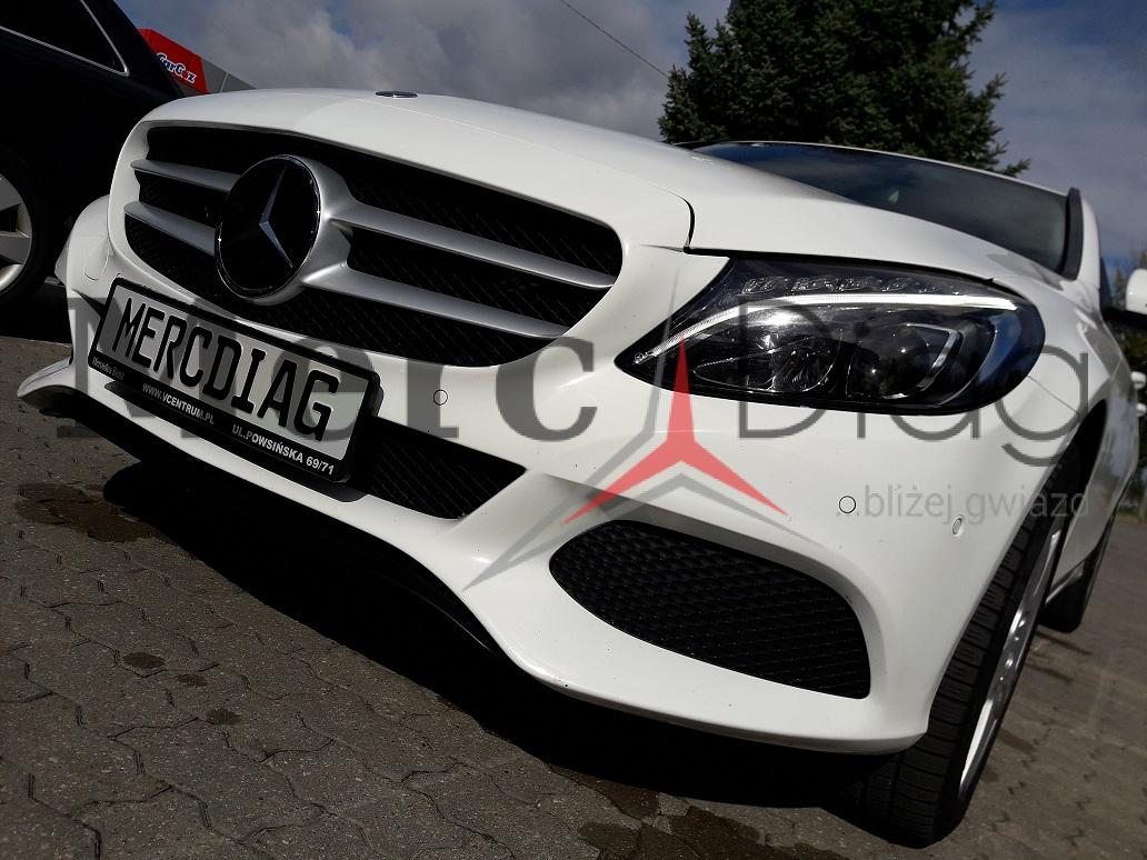 Mercedes W205 C200 – Distronic Plus system retrofit. Genuine rearview camera installation with lines and Park Assist visualisation.
